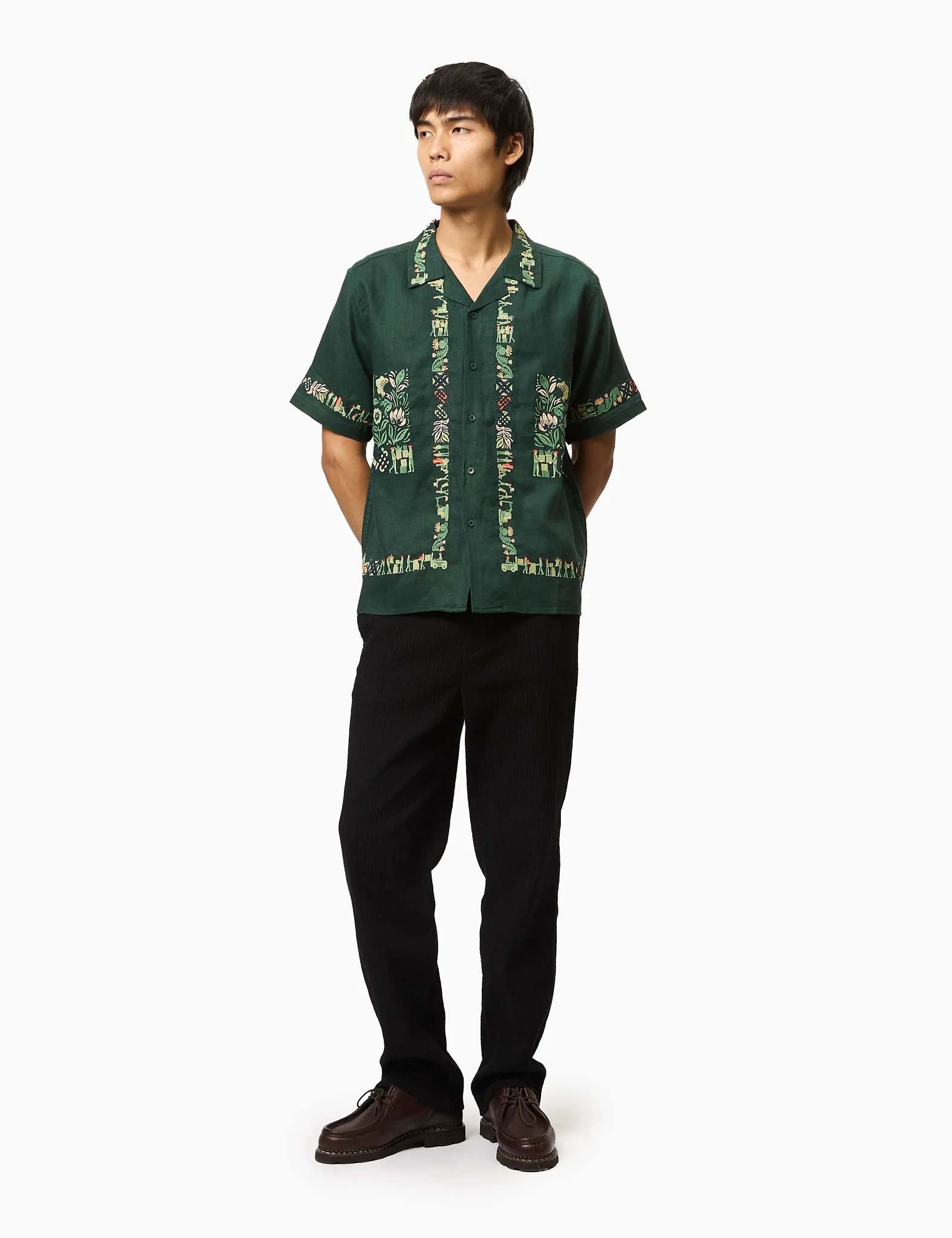 Percival Import Embroidered Cuban Shirt (Linen) - Forest Green